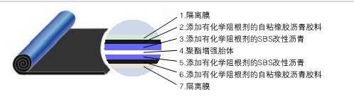 耐根穿刺自粘防水卷材能與基層緊密粘結,形成可靠的皮膚式防水體系。該材料既具有自粘防水卷材相同的防水性能,同時又具有阻止植物根穿透的功能。